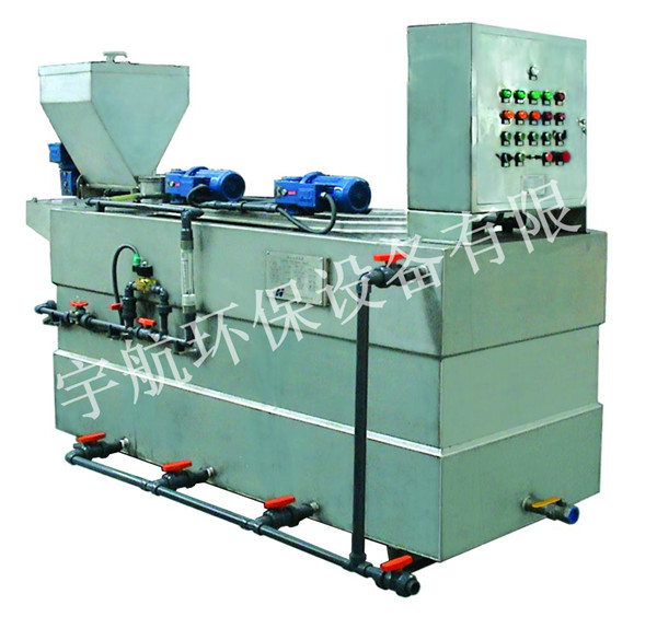 本設備可滿足固體和液體絮凝劑的自動制備,主要由:三腔藥箱,自動吸料機、自動投粉機、自動配水系統(tǒng)、出藥系統(tǒng),就地電氣控制系統(tǒng)等組成。